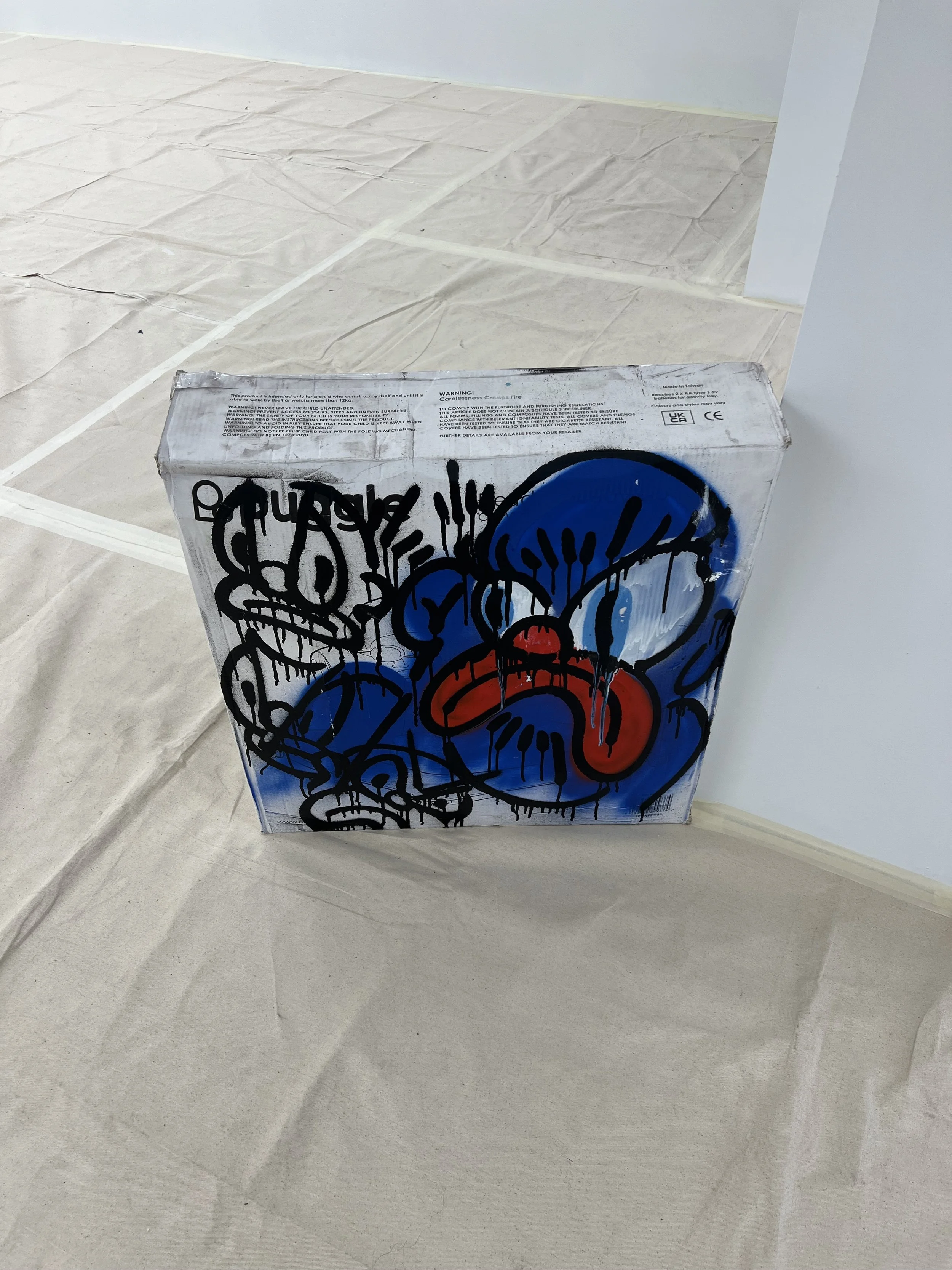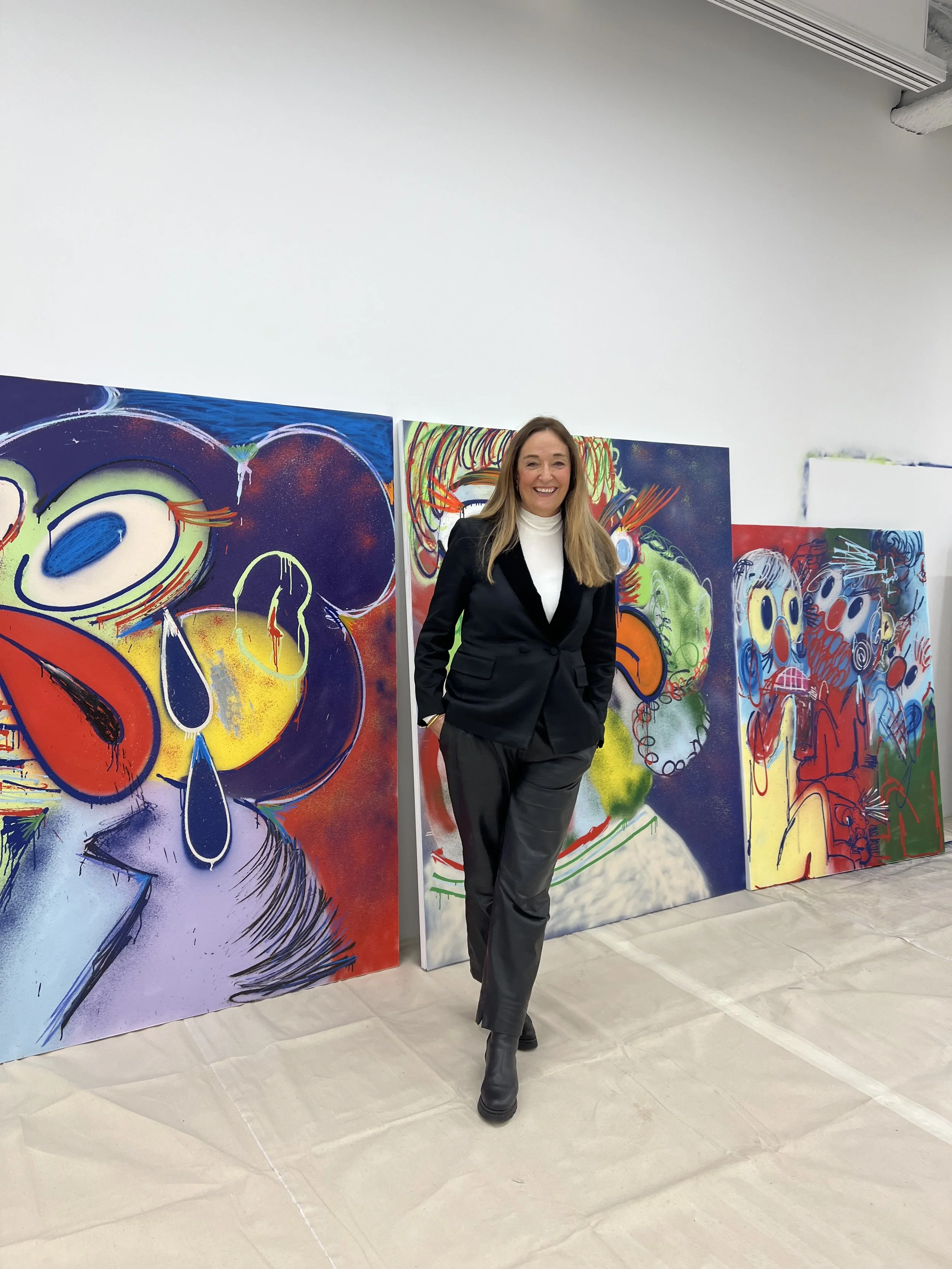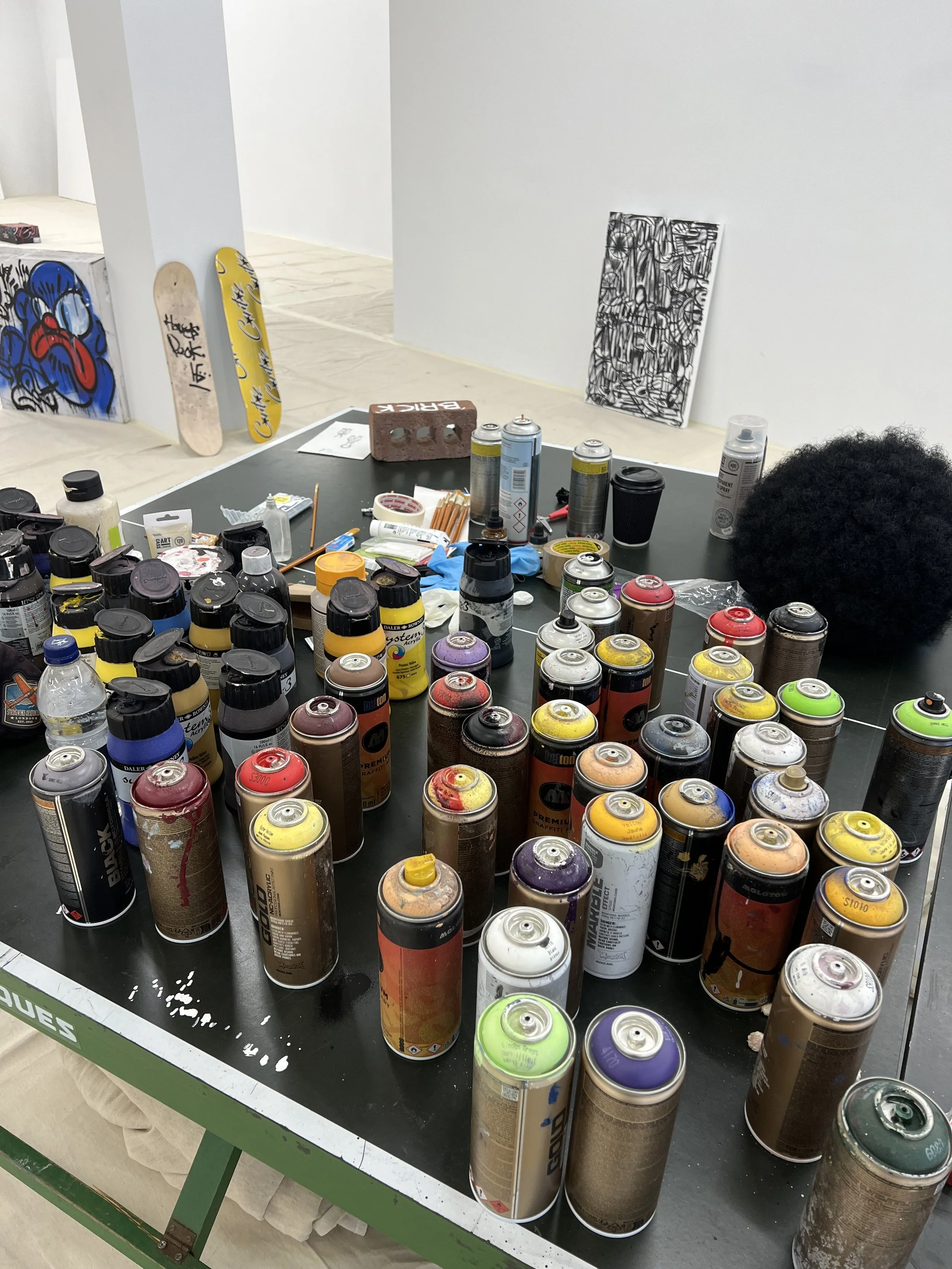 Today, I was at Saatchi Yates looking at Slawn’s studio. It’s set up inside the gallery, and if you pop in at the right time, you can see him painting. Slawn is twenty-five years old. He must be a newborn. He’s definitely not an old master, that’s the dormobile. He intersects street art with abstract expressionism. The space is intimate but expansive, where raw creativity meets art in mid-motion.