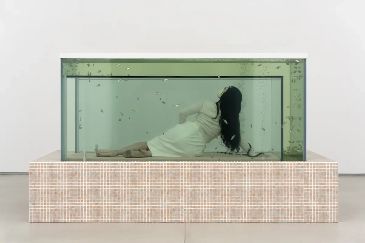 Glass Slipper - Ariana Papademetropoulos - 2026 - Thaddaeus Ropac A immersive bed in a fish tank that you can climb into.